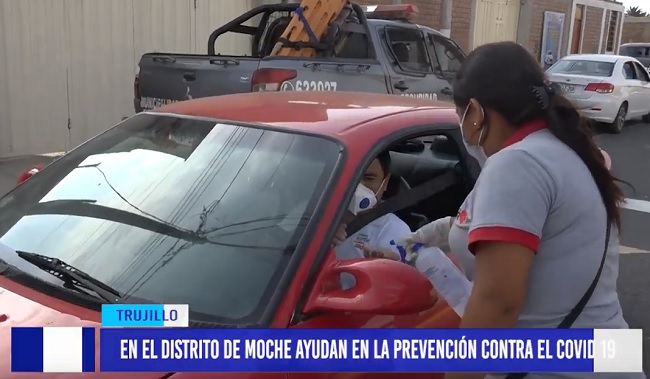 Personal de la Gerencia de Salud de la comuna de Moche, ha instalado dos carpas en diversas partes de la jurisdicción para conscientizar a las personas y transportistas en prevención del coronavirus. Además, brindan alcohol en gel.