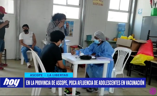 En los diferentes distritos de la provincia de Ascope, adolecentes recibieron su primera dosis Pfizer, por desinformación de padres de familia, hubo poca afluencia de menores de edad el pasado fin de semana, por lo que se espera que se retome este proceso durante estos días, para que se complete con todo el grupo etario.