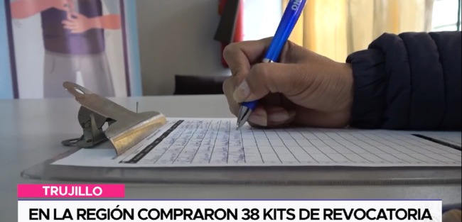 En la región La Libertad se vendieron 38 kits de revocatoria para remover a distintas autoridades. Según informó la gestora de la oficina regional de coordinación de la ONPE, Dinka Huaccha, el siguiente paso para este proceso, es que los promotores validen las firmas recolectadas ante el RENIEC. Cabe indicar que, se debe reunir al menos las firmas del 25% de cada población electoral.