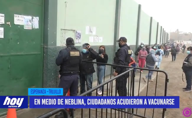 Se registró poca afluencia de ciudadanos en los exteriores del estadio municipal del distrito de La Esperanza, adultos y jóvenes realizaron cola desde las 5 de la madrugada para recibir la segunda dosis de la vacuna Sinopharm.