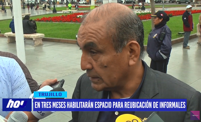 El alcalde de la Municipalidad Provincial de Trujillo, Daniel Marcelo Jacinto, habló sobre la reubicación de los ambulantes retirados de los alrededores del mercado zonal Palermo, a un terreno de propiedad de la Beneficencia Pública.