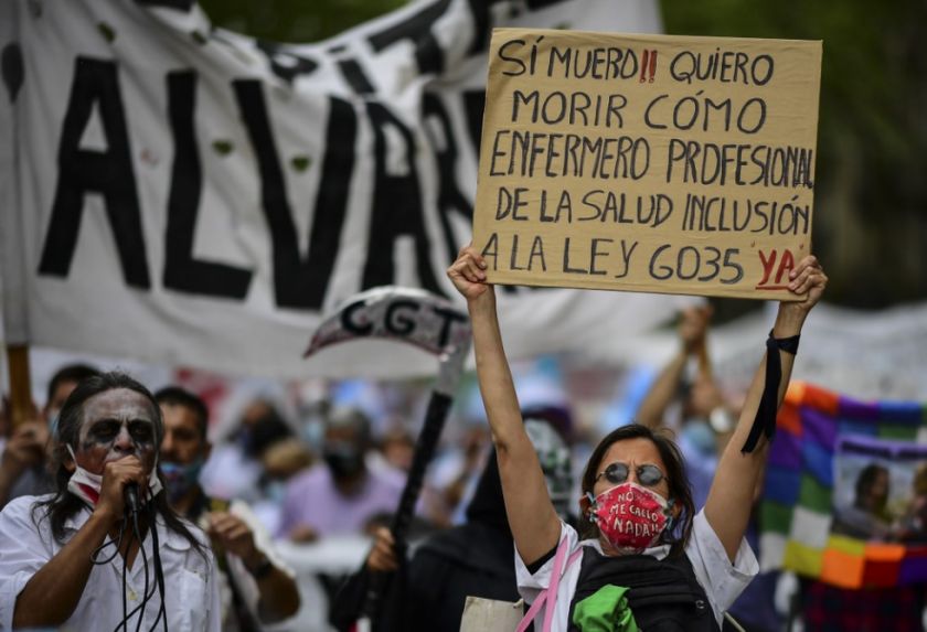 “La pandemia solo vino a empeorar las cosas, nosotros ya veníamos trabajando mal, con precarización laboral hace muchísimo tiempo, la pandemia sacó a relucir la mugre del sistema de salud pública de la ciudad”, dijo a la AFP Vanesa Fernández, una enfermera de 36 años.