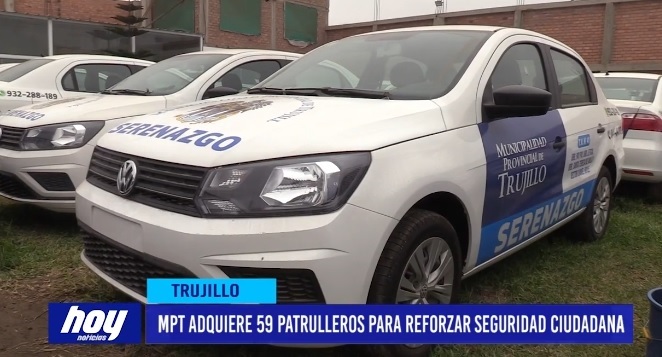La Municipalidad Provincial de Trujillo realizo el proceso de adquisición de 59 autos para el patrullaje integrado con la policía nacional del Perú, lo que permitirá mejorar el servicio de seguridad ciudadana en la provincia. Estos vehículos serán totalmente equipados y se espera que en los próximos días inicien su recorrido para fortalecer el patrullaje en todos los territorios vecinales.