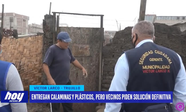La municipalidad distrital de Víctor Larco, a través de la Gerencia de Defensa Civil llevó apoyo consistente en calaminas, plásticos y sacos con arena a fin de proteger en algo las viviendas de los moradores de Buenos Aires centro que fueron afectados por los oleajes anómalos que se presentan en los últimos días en el litoral.