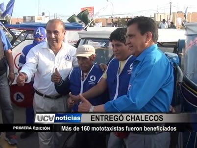 El candidato a la alcaldía de La Esperanza por Alianza Para el Progreso, entregó chalecos a mototaxistas de cuatro asociaciones del distrito.