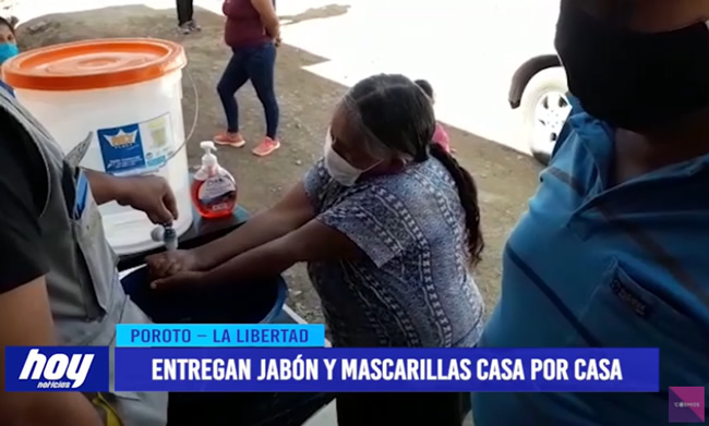 En el distrito de Poroto, la municipalidad está entregando casa por casa mascarillas y jabones.