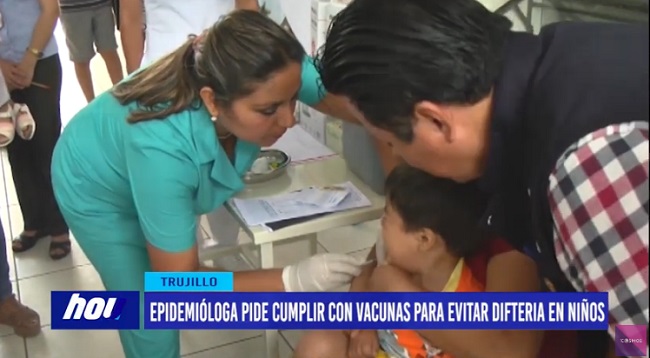Se confirmó primer caso de difteria en niña de 5 años, en Lima. Jefa de epidemiología del gobierno regional de La Libertad, Ana María Burga, asegura que es una enfermedad que puede llevar a la muerte, por lo que pide a los padres de familia llevar a sus niños a los centros de salud, para su vacunación.
