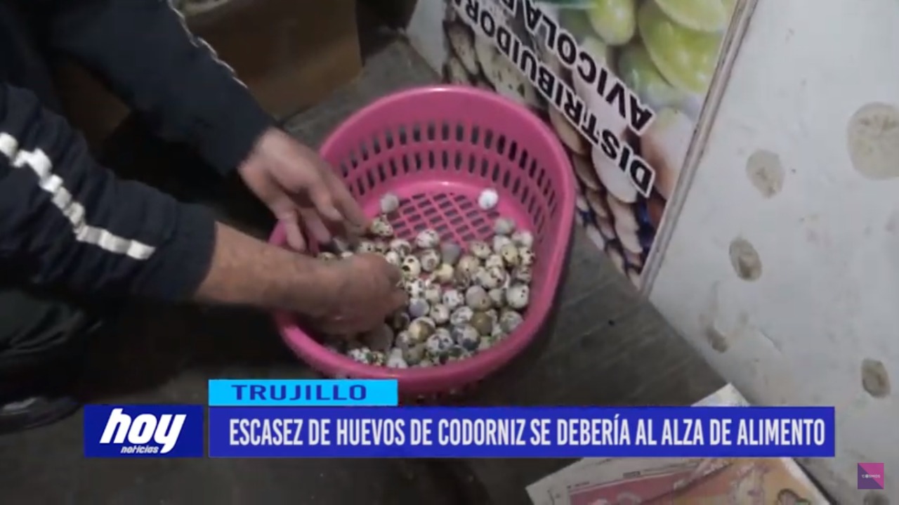 A solo días de las elecciones presidenciales en el Perú, continúa la incertidumbre en las amas de casa tras el incremento de varios alimentos, en esta ocasión un nuevo problema se suma, la escasez de los huevos de codorniz. Muchos establecimientos y supermercados están desabastecidos de este producto, por ejemplo, en el distrito de La Esperanza, en el mercado modelo este comerciante de huevos nos confirmó que le informaron que esto se debe a que el alimento de estas aves se ha incrementado.