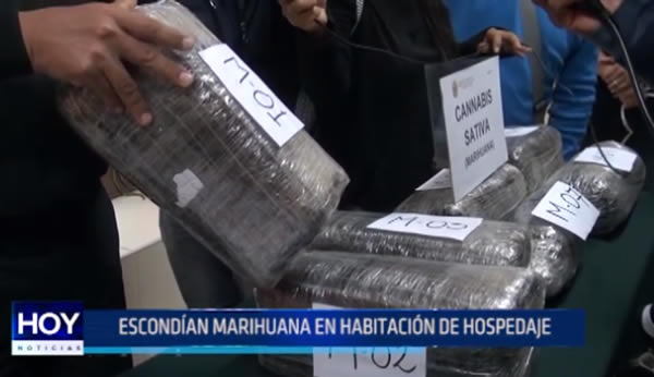 Dos sujetos fueron detenidos en poder de 25 kilos de marihuana en el interior de un hospedaje ubicado en el Centro Histórico de Trujillo. La droga fue traída desde Huamachuco.