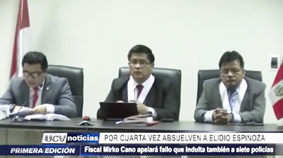 El Poder Judicial absolvió por cuarta vez al Coronel en retiro Elidio Espinoza, y siete policías acusados de integrar presuntamente el “Escuadrón de la muerte” en 2007. Por su parte, el fiscal Mirko Cano Gamero señaló que apelará el fallo.