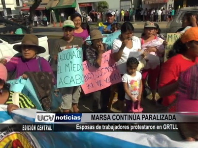 Más de tres mil trabajadores de la empresa minera Marsa continúan acatando una huelga indefinida. Las esposas de los sindicalistas llegaron hasta la sede de la Gerencia Regional de Trabajo para el exigir el cumplimiento de sus demandas entre las que destaca el incremento de sus salarios.