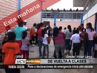 El director del Colegio Víctor Larco, Ramiro Sánchez Mercado reveló que su plantel ubicado en el distrito del mismo nombre, se encuentra seriamente afectado en su infraestructura y por este motivo los alumnos recibirán las clases frente a sus aulas.