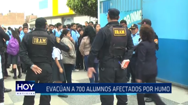700 alumnos de un colegio de urbanización La Noria fueron evacuados, tras ser afectados por el humo proveniente de la quema irresponsable de basura y desmonte, en un predio abandonado.