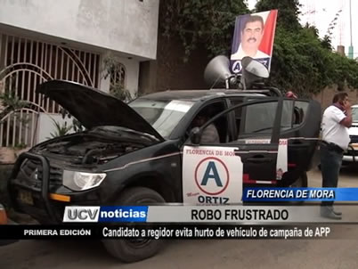 De otro lado, el candidato a primer regidor a la alcaldía del distrito de Florencia de Mora por Alianza Para el Progreso, Hermes Cabeza, frustró el robo de autopartes de uno de los vehículos que son usados en la campaña del candidato Marcial Ortiz.