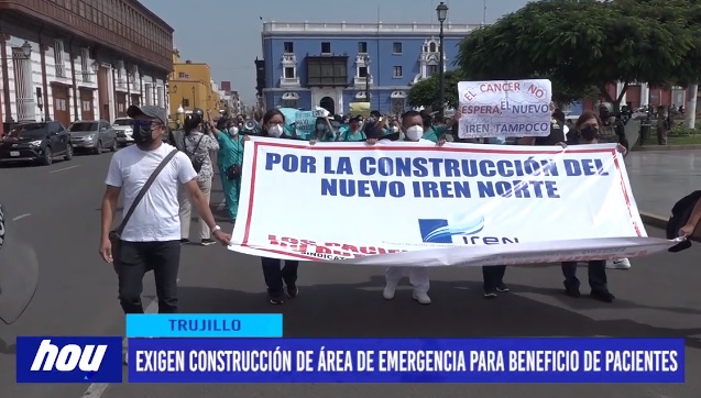 El sindicato de enfermeras del IREN Norte protestaron en la plaza de armas exigiendo al gobierno regional la construcción de un espacio de emergencia para lograr brindar una mejor atención a los pacientes, según indicaron son varios años los que vienen laborando en un espacio precario, y que pese a haber recibido la visita de algunos congresistas, no les brinden solución.