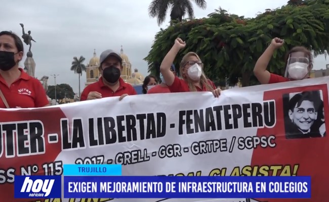 A unas semanas del retorno a clases presenciales, los profesores del Sindicato Único de Trabajadores en Educación Regional (SUTER) llegaron hasta la plaza mayor de Trujillo para pedir a las autoridades regionales el mejoramiento de las instituciones educativas que todavía presentan deficiencias en cuanto a infraestructura. Según indicaron varias de ellas no cuentan con el correcto funcionamiento del servicio de agua y luz y aún no han sido implementados los protocolos de bioseguridad, lamentablemente esto sería perjudicial para la salud de los menores.