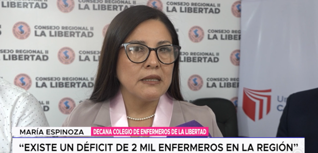 La decana del Colegio de Enfermeros de La Libertad, María Espinoza, indicó que es necesario que las autoridades incrementen el número de estos profesionales en los hospitales para asegurar una atención médica de calidad.
