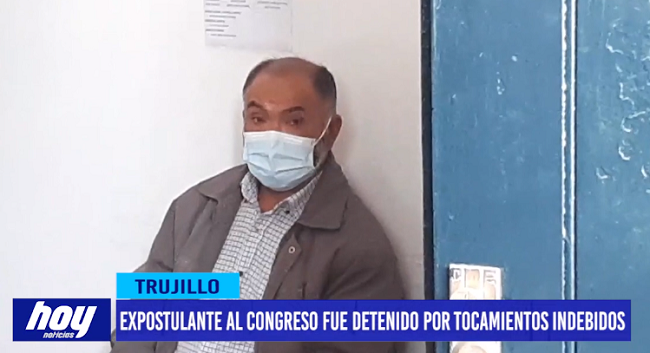Este lunes al promediar las 12 del medio día fue detenida una persona de sexo masculino en el centro histórico de Trujillo, según información policial este hombre estaba siendo buscado por las autoridades desde el año pasado por tocamientos indebidos en la ciudad de Cajamarca. La identidad del sujeto es Heriberto Gómez Sánchez de 56 años de edad, quien sorprendentemente sería expostulante al congreso de la república por el partido Perú Libre.