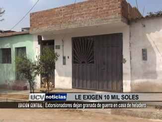Un heladero y su sobrino, un ingeniero civil, son amenazados de muerte para que paguen una extorsión de 10 mil soles. Las víctimas aseguran que no pagarán y que dejarán su suerte en manos del Todopoderoso, pese a que les enviaron una granada de guerra.