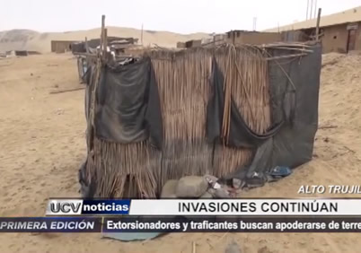 Continúan las invasiones de los arenales del centro poblado Alto Trujillo. Un equipo de prensa de UCV Noticias recorrió la zona y comprobó que casi nadie habita las precarias viviendas, las cuales, sin embargo, son custodiadas por bandas delictivas.