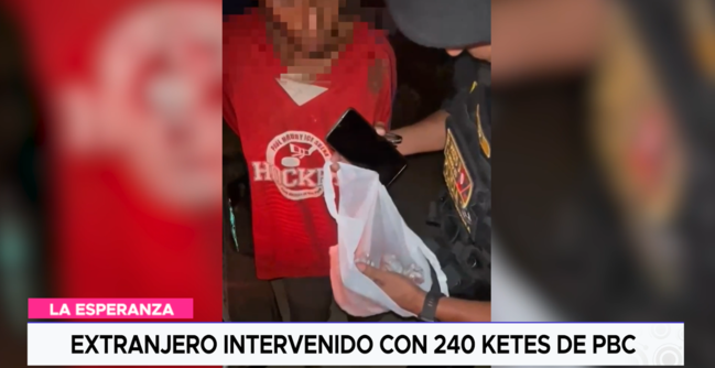 Su actuar sospechoso lo delató y cayó con un aproximado de 240 ketes, de una sustancia la cual sería PBC. Esto tras una intervención policial, en inmediaciones de la calle José Artigas en el distrito de La Esperanza.
