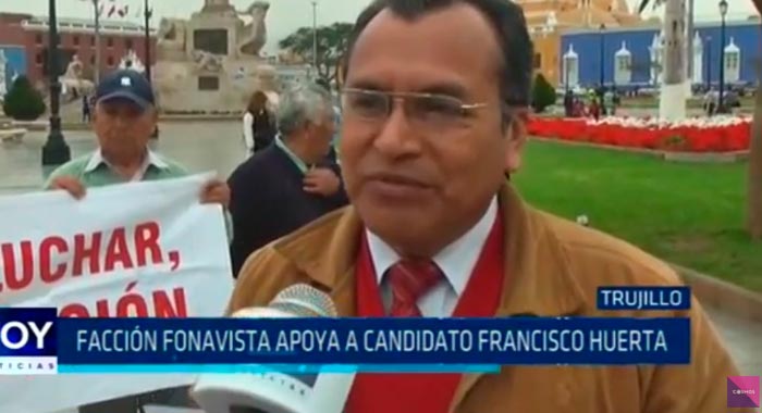 Una facción de los fonavistas de Trujillo mostró su respaldo a uno de los candidatos a la alcaldía provincial, se trata de Francisco Huerta. Aunque la presencia de los exaportantes en la Plaza Mayor fue muy reducida.