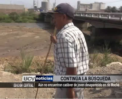 La familia de un joven canoista desaparecido en las aguas del rio Moche continúa buscándolo en la rivera sin obtener resultados positivos. El deportista empírico se preparaba para ingresar a la universidad y deja a una niña de año y medio en la orfandad.