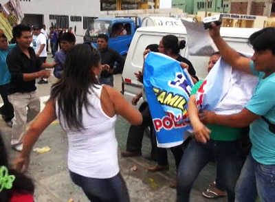 Familiares y allegados tanto del desaparecido alcalde de Angasmarca, Diógenes Geldres Velásquez, como de los presuntos autores intelectuales del homicidio, se agarraron a golpes en los exteriores del Poder Judicial. Una persona terminó herida por arma punzo cortante.