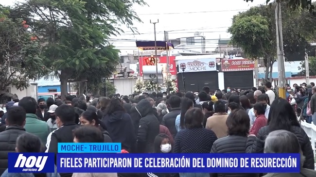 Luego de dos años de pandemia, cientos de fieles y turistas volvieron al distrito de Moche, ubicado en la provincia de Trujillo, región la Libertad, para recorrer principales calles del lugar y participar de la celebración del Domingo de Resurrección o la Pascua de Resurrección, una fiesta que celebra el regreso a la vida de Jesús el hijo de Dios. Luego del martirio vivido por Cristo que finalizó en su crucifixión en el calvario y tal como lo había prometido a sus discípulos , Jesús regresó de la muerte.