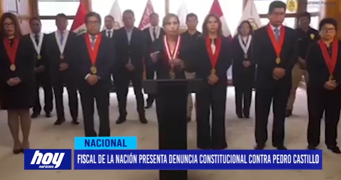 La fiscal de la Nación, Patricia Benavides, presentó esta tarde la anunciada denuncia constitucional en contra del presidente Pedro Castillo por el presunto delito de organización criminal, entre otros. La denuncia también comprende al prófugo exministro de transportes, Juan Silva, así como al exministro Geiner Alvarado.
