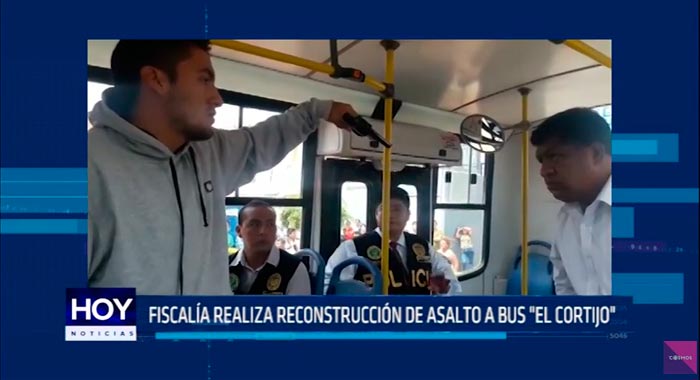 Los sujetos que perpetraron el asalto a un microbús, en donde un agente policial fue herido de un balazo, dieron detalles del ilícito, en presencia de un fiscal y de peritos de criminalística.