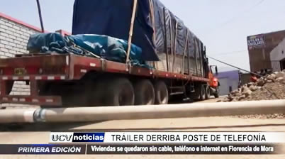 Un tráiler derribó un poste de telefonía en el distrito de Florencia de Mora. El conductor de la unidad hizo una mala maniobra en una calle estrecha.