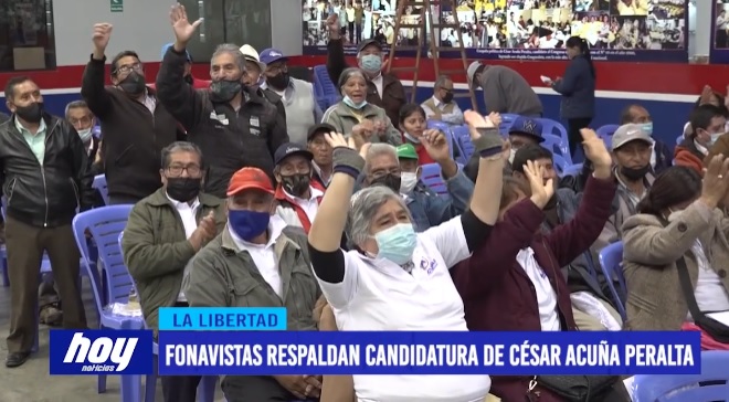 Este martes en una conferencia de prensa, integrantes del FONAVI a nivel nacional mostraron su respaldo y apoyo a la candidatura del candidato al Gobierno Regional de La Libertad, César Acuña Peralta. En La Libertad son 200 mil Fonavistas y en todo el país 2 millones, en su mayoría adultos mayores por lo que piden a acuña peralta los apoye con su bancada del congreso en la devolución de sus aportes.