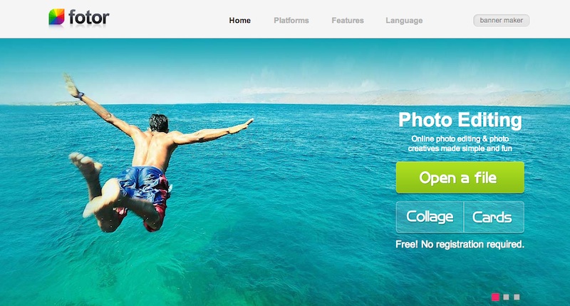 Los pasos son sencillos: La primera imagen que verás hace referencia al modo online de Fotor, que permite abrir una imagen para editarla «Open a file«, crear un mosaico «Collage» y crear una felicitación «Cards«, que es la opción que nos interesa. Es gratis y no requiere registro. Los paso siguientes son: elegir la temática de la felicitación, elegir la plantilla, añadir las fotos, agregar los textos y los cliparts para finalmente guardar y compartir o imprimir.