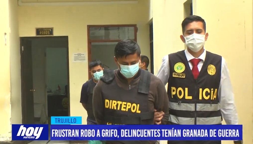 Fueron intervenidos cuando pretendían asaltar un grifo ubicado en inmediaciones del óvalo La Marina, a estos sujetos pertenecientes a la banda “Los Inquietos del Norte” se les encontró una granada de guerra, celulares y prendas de vestir. Además de un croquis donde detallaban su ingreso y fuga tras efectuar el atraco.