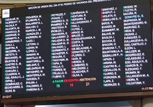 Diversas bancadas que del Congreso de la República votaron a favor de la vacancia por incapacidad moral contra el presidente Pedro Pablo Kuczynski.