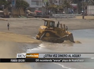 El Gerente Regional de Turismo propuso que el balneario de Huanchaco sea arenado para poder ganar metros de playa ante el avance de la erosión costera. Además, denunció que existe una gran desidia por parte de las comunas costeras al arrojar desmonte al mar y contaminar sus aguas.
