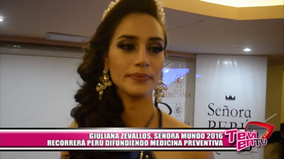 Giuliana Zevallos, la peruana que se coronó Señora Mundo 2016, anunció que durante los próximos meses viajará por el Perú para difundir la medicina preventiva. A pocos días de haberse coronado en Corea del Sur, ella se mentaliza para lo que será su labor y aporte social respaldándose en su carrera como médica.