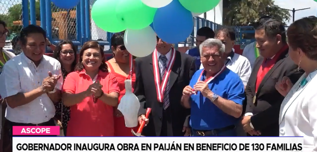 Autoridades de la localidad de Paiján participaron de la inauguración de la los «servicios públicos de integración económica y social del parque recreacional La Grama que incluye una losa de grass sintético, tribunas, cerco perimétrico, veredas, así como instalaciones sanitarias y eléctricas”.