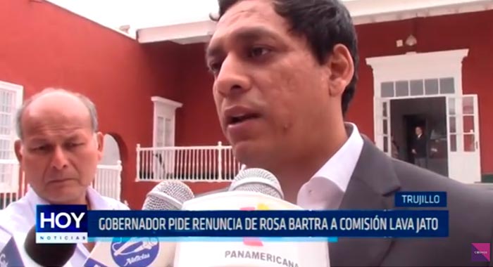 El gobernador Luis Valdez exigió la renuncia de la congresista Rosa Bartra de la comisión lava jato, tras conocerse un presunto manejo político para favorecer a la empresa Odebrecht.