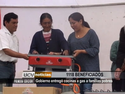 El programa estatal “Cocina Perú”, entregó más de mil cocinas a gas a familias de escasos recursos del distrito El Porvenir. Los beneficiados no pueden acceder a luz eléctrica y preparaban sus alimentos en cocinas a leña.