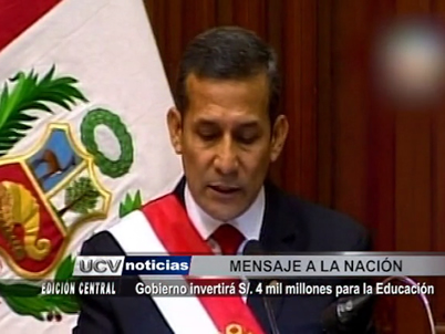 El Presidente de la República, Ollanta Humala, dio el acostumbrado discurso de Fiestas Patrias. El mandatario se enfocó en la inversión de cuatro mil millones de soles para el sector Educación.