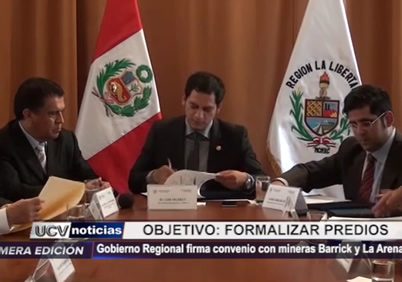 El Gobierno Regional y las empresas mineras Barrick y La Arena, firmaron un convenio de prestación de servicios para formalización y titulación de predios en la provincia de Sánchez Carrión y Santiago de Chuco. Aproximademente serán más de tres mil pobladores beneficiados.