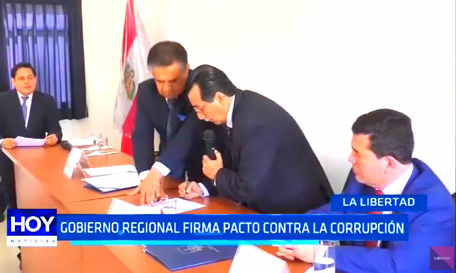 El gobernador de La Libertad, gerentes regionales y el consejero delegado firmaron el pacto contra la corrupción y la impunidad.