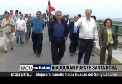 El Gobierno Regional de La Libertad inauguró el puente Santa Rosa, estructura que unirá este poblado con los restos arqueológicos de las huacas del Sol y la Luna, lo que permitirá la transitividad a esta importante zona turística.
