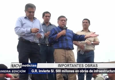 El Gobernador Regional, César Acuña, informó que hasta el momento el Gobierno Regional lleva gestionando cerca 500 millones de soles, los mismos que se vienen utilizando para la ejecución de obras en la sierra liberteña, principalmente en la provincia de Bolívar.