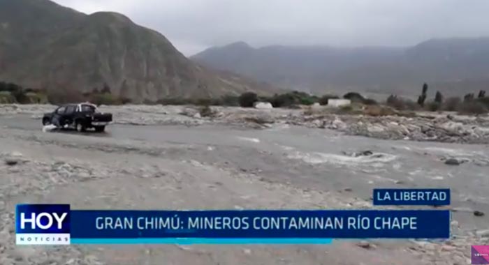 Pobladores de la provincia Chimú denuncian la contaminación con relaves mineros del rio Chape, afluente del rio Chicama. La denuncia ha sido presentada ante la OEFA, la Fiscalía en materia ambiental, Gerencia Regional del Ambiente y Energía y Minas y hasta el momento no se han realizado acciones para impedir el atentado al medio ambiente.