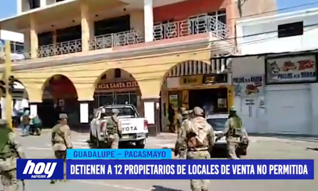 Efectivos de la comisaría del distrito de Guadalupe, provincia de Pacasmayo, zona donde el Presidente Martín Vizcarra, ordenó el regreso a la cuarentena, realizaron un operativo a los propietarios de las ferreterías, bares y negocios que están fuera del rubro de permitidos. Doce dueños de éstos establecimientos fueron detenidos por la policía.