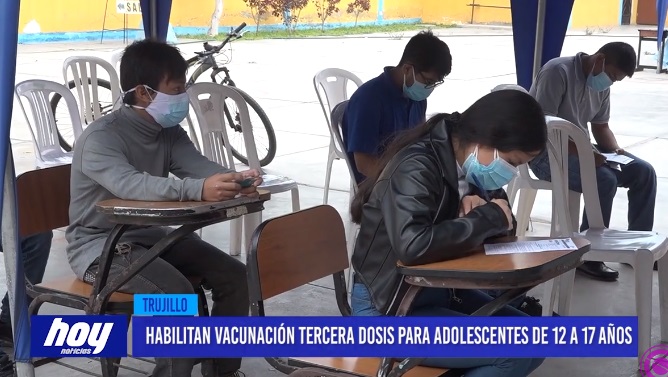 Se inició con la vacunación de la tercera dosis contra la covid-19 a los menores de 12 a 17 años en todos los centros de inmunización del país. En la ciudad de Trujillo, diversos puntos están habilitados para aplicar esta dosis a adolescentes que hayan cumplido 5 meses, después de haber recibido la segunda dosis.