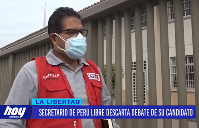 Secretario regional de Perú Libre Rumaldo Viera, explica que candidato a la presidencia Pedro Castillo no participará del debate pactado en chota para el sábado hasta que el JNE no lo garantice.